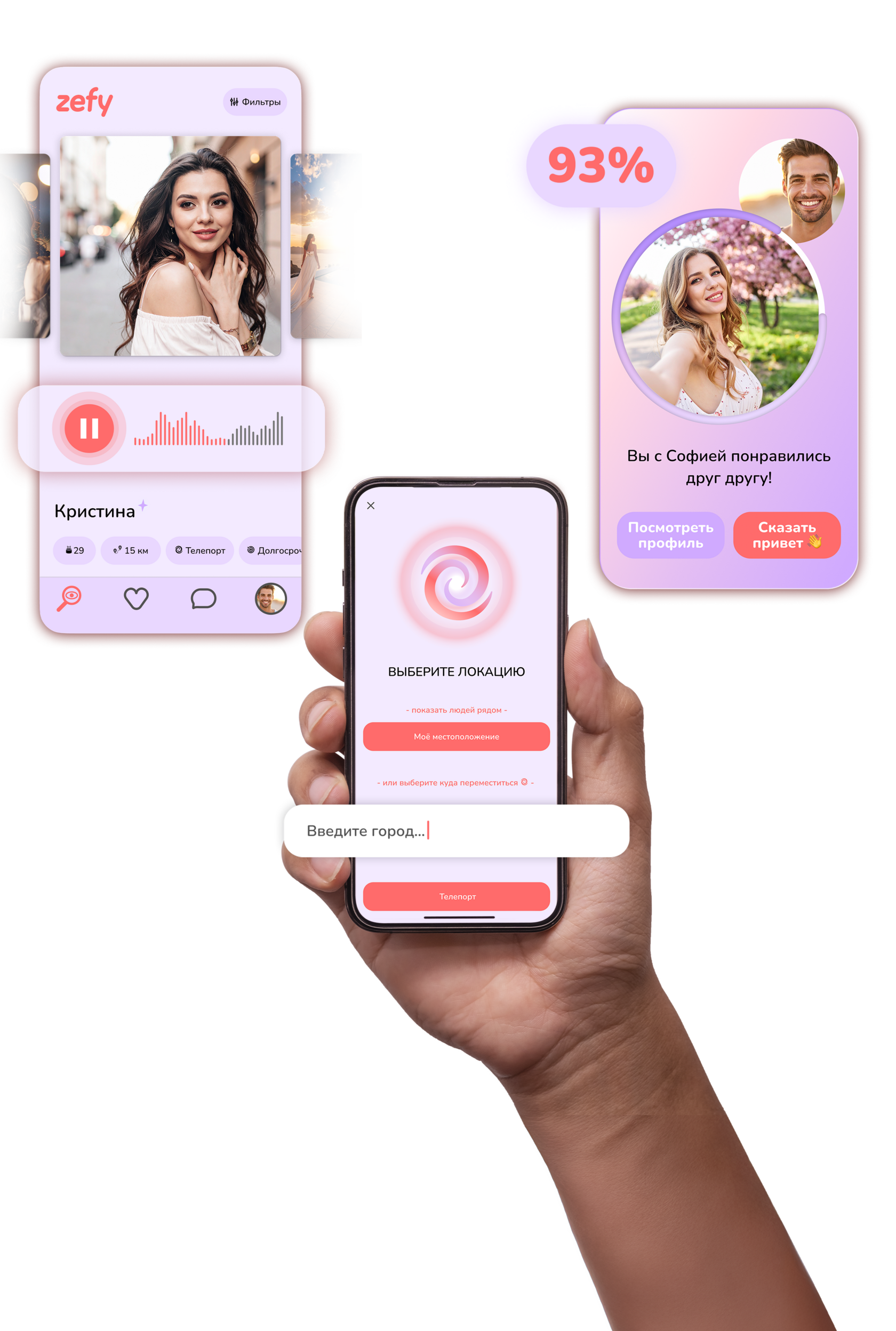Путешествуйте по городам с помощью Телепорта, знакомьтесь с интересными людьми через подробные профили и находите совместимость, которая действительно что-то значит — где бы вы ни находились.